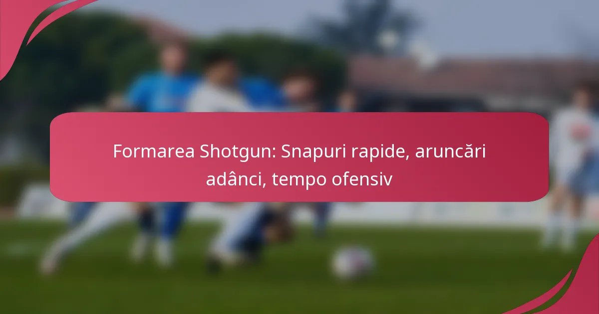 Formația shotgun este o aliniere ofensivă strategică în fotbalul american care poziționează fundașul (quarterback) la câțiva metri în spatele centrului, facilitând pase rapide și aruncări adânci. Această configurație nu doar că îmbunătățește vizibilitatea și timpul de reacție al fundașului, dar sporește și tempo-ul ofensiv general, permițând o execuție rapidă a jocului care poate surprinde apărarea. Prin valorificarea snap-urilor rapide și a aruncărilor adânci, echipele pot crea oportunități de punctaj și pot exploata eficient slăbiciunile defensive.